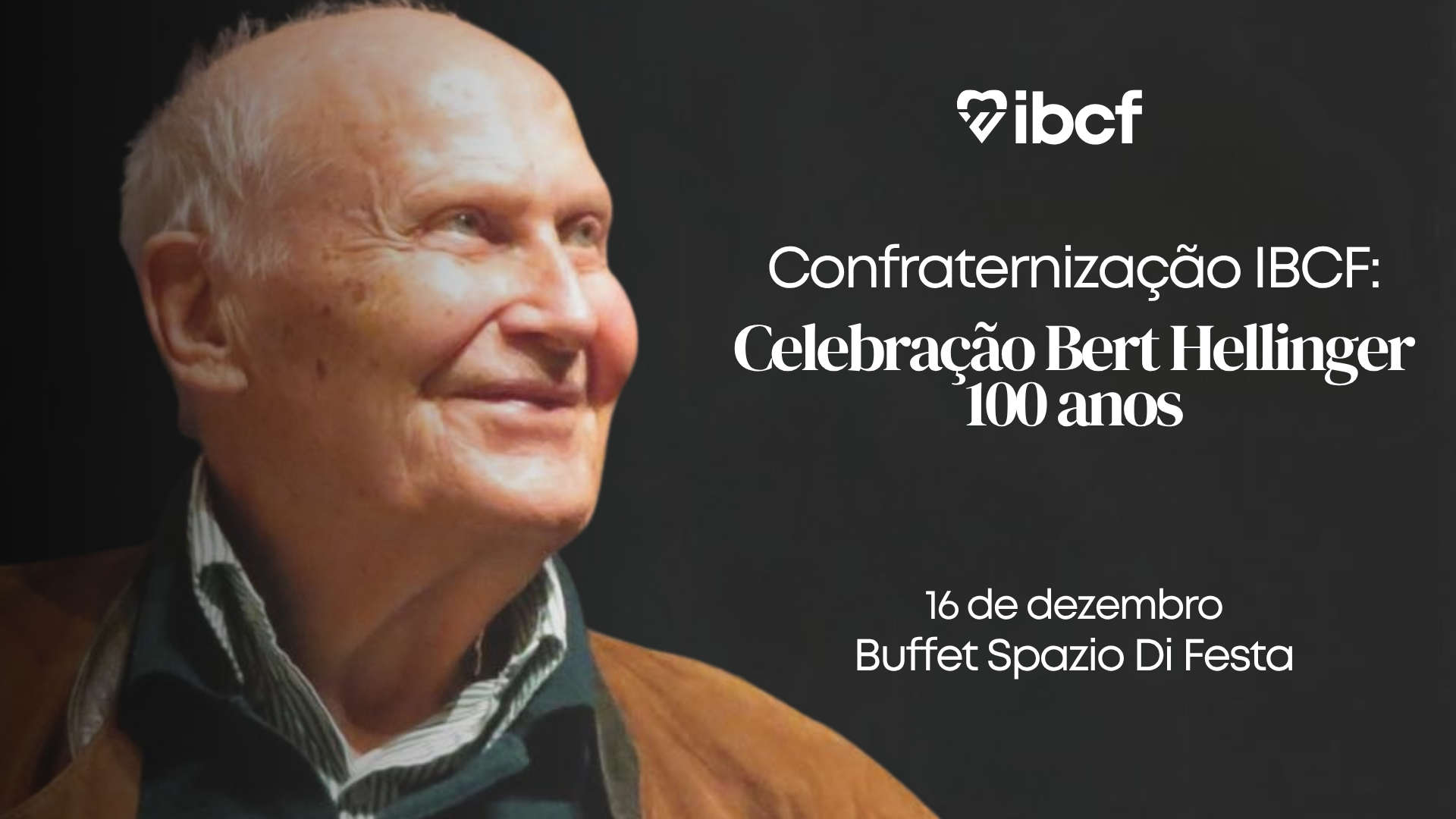 No dia 16 de dezembro, convidamos você para uma confraternização inesquecível em homenagem aos 100 anos de Bert Hellinger, promovida pelo IBCF.